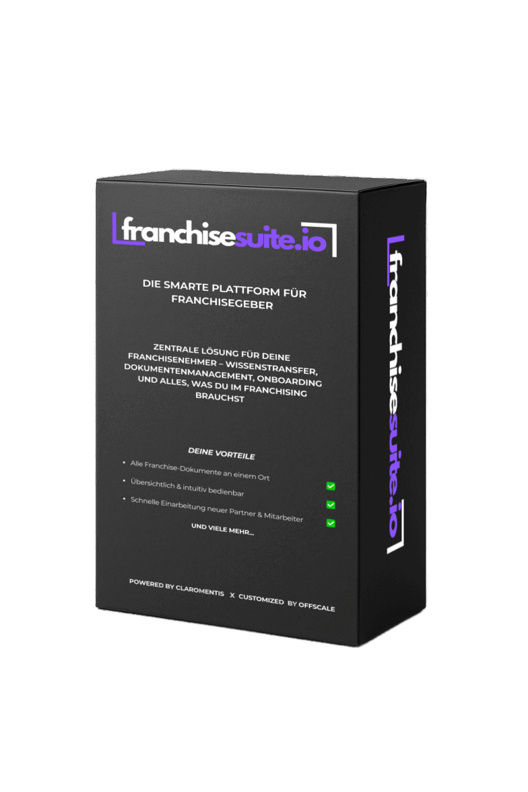 Optional kann auch hier unsere Franchisegeber-Plattform gebucht werden, um Wissenstransfer, Dokumentenmanagement und Mitarbeiter-Onboarding für deine Franchisenehmer optimal zu organisieren.